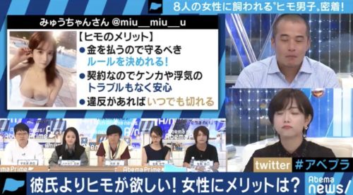 みゅうちゃんさんがヒモ男を募集するメリットについて「#アベプラ」で語られていました。